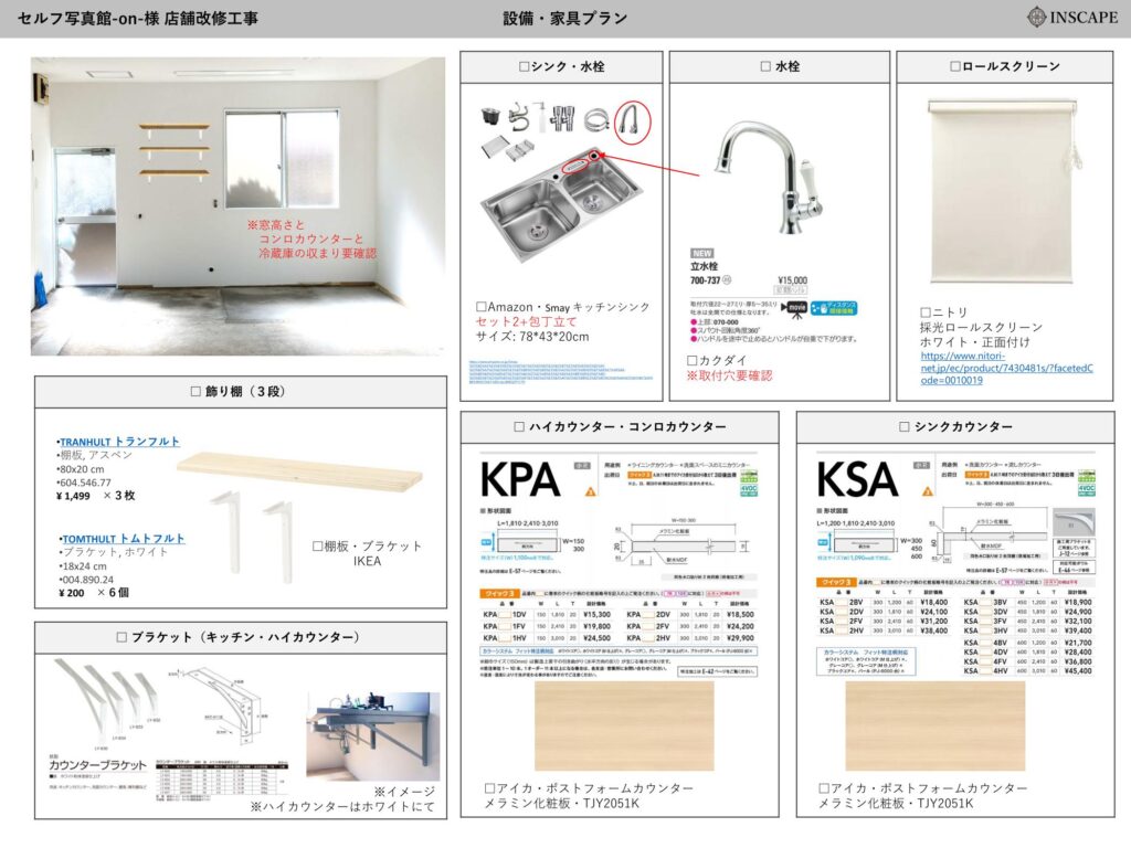 図面と仕様のプランボードを作成し、施工していきました。