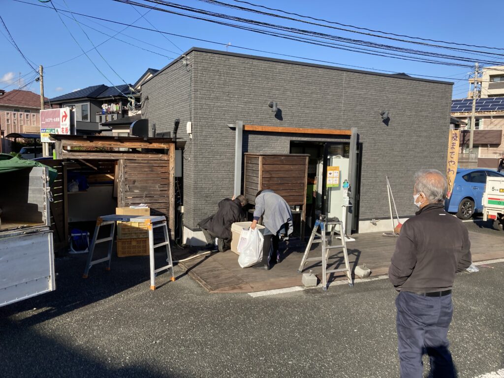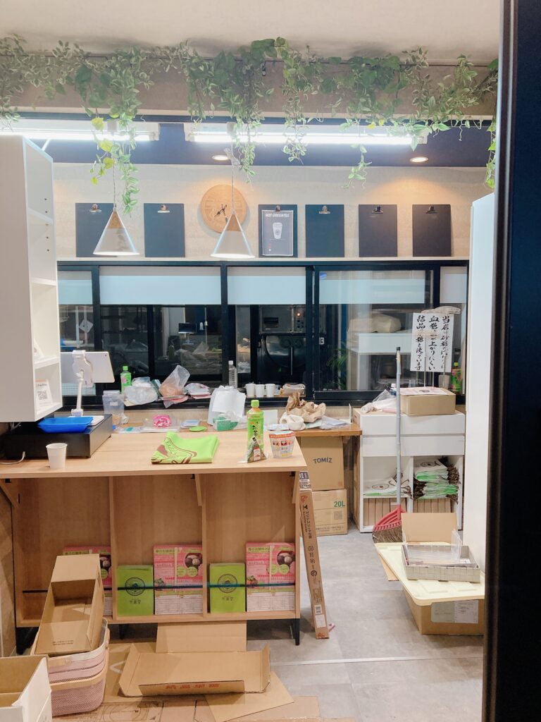 設営中の様子。メニューボードを作ったり、植物を設置したりしています。